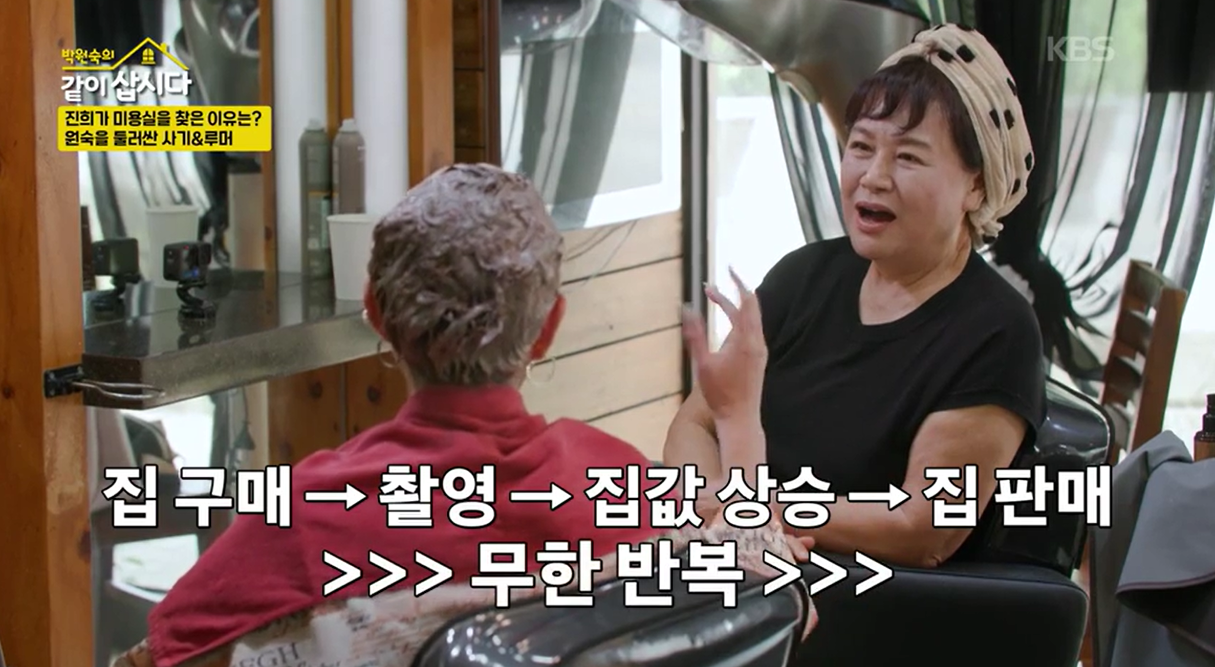 이야기는 홍진희와 박원숙이 미용실에서 대화를 나누면서 시작됩니다.