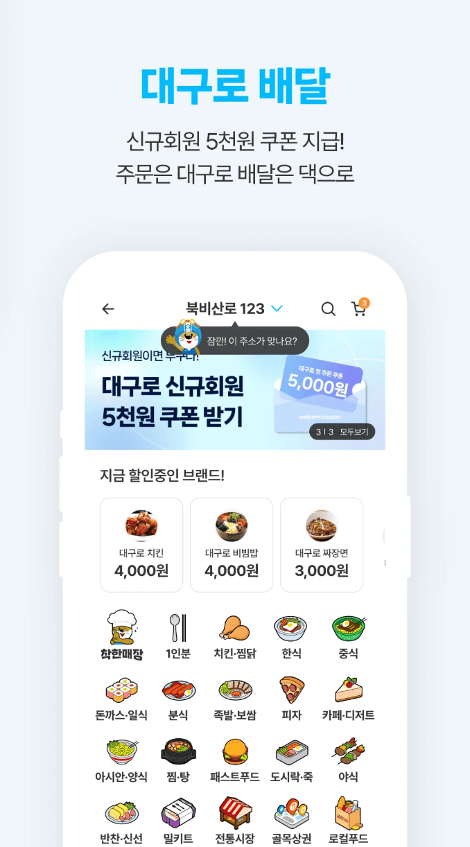 공공 배달앱 '대구로'에서 '대구로페이'로 결제하면 5% 추가 할인 혜택 받을 수 있습니다.