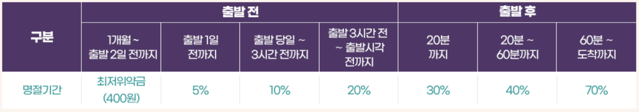 승차권 노쇼 방지를 위해 주말/공휴일과 동일한 기준을 적용합니다.