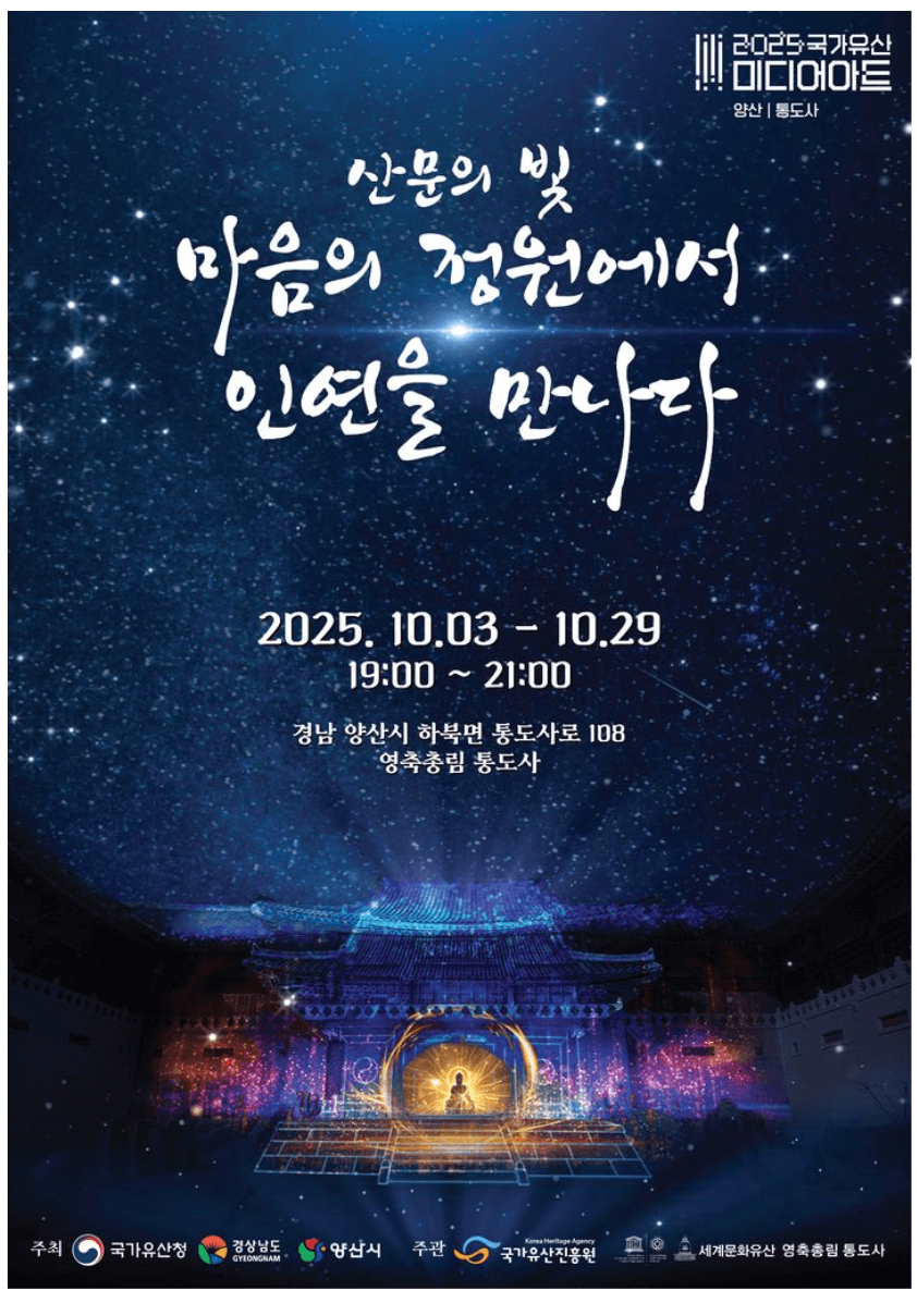 양산시가 통도사에서 '2025 국가유산 미디어아트' 행사를 개최합니다.