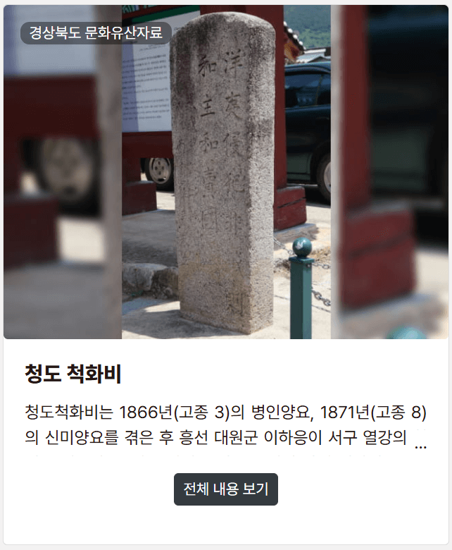 청도읍성 일원은 보물 석빙고뿐만 아니라 경상북도 지정 문화유산인 객사 건물 도주관, 청도동헌, 청도향교, 청도 척화비 등 국가유산 6점이 남겨져있는 유적지입니다.