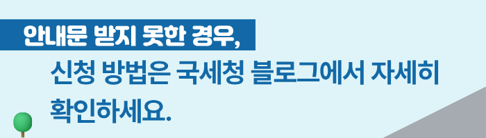 신청 안내문을 받은 경우, 세무서 방문 없이 안내문에 기재된 개별인증번호를 활용하여 홈택스, ARS 또는 신청대리 서비스를 이용하면 간편하게 신청하실 수 있습니다.